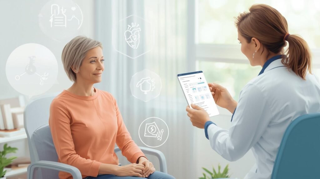 Essa integração é importante porque a saúde hormonal e metabólica da mulher após os 40 anos também se relaciona com o risco cardiovascular futuro.